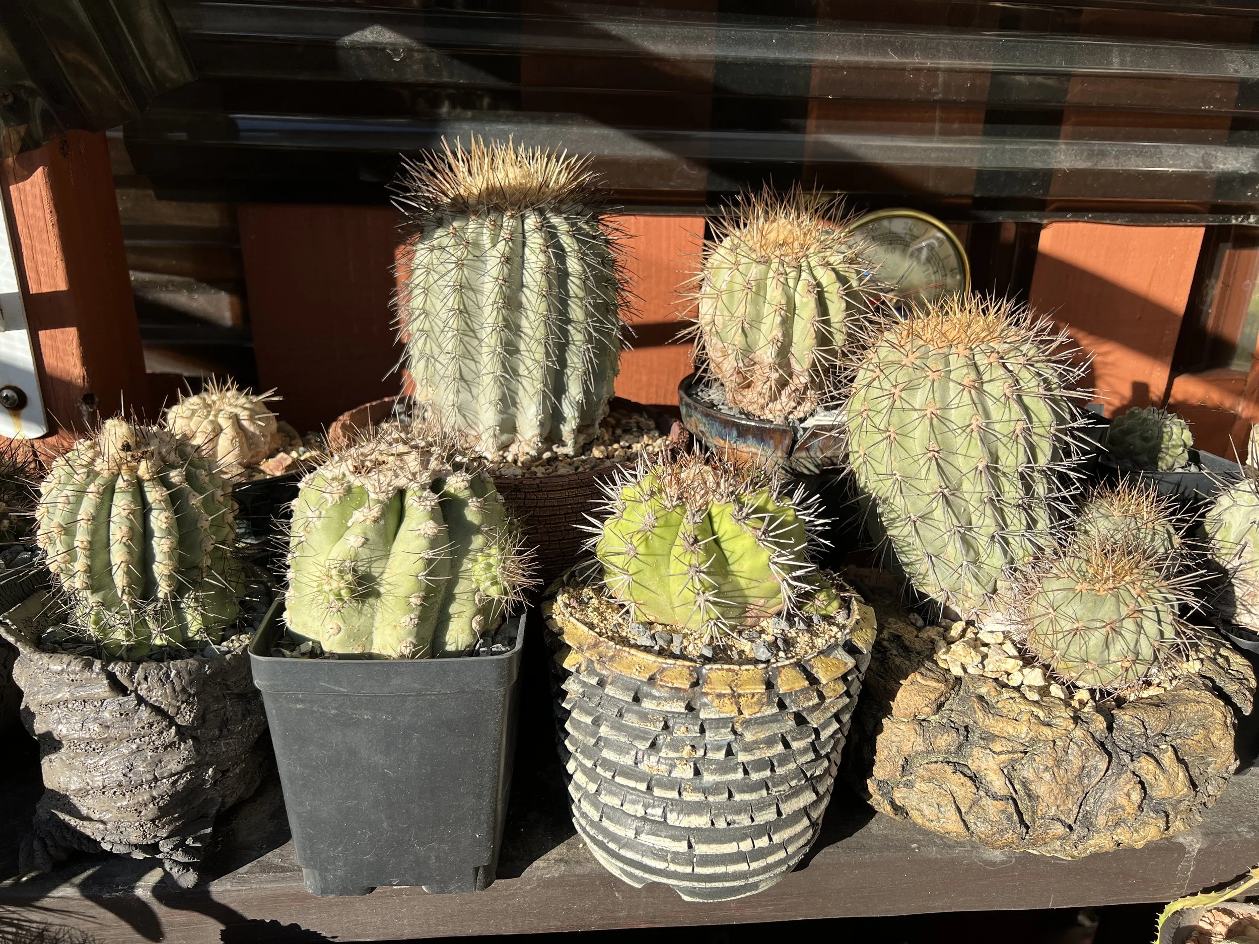 Finally, we arrive at water, purposely leaving it for last as any advice on watering must first take into account that the 2 pillars above are taken care of. In order to thrive a cactus or succulent must first be potted in the correct soil and second receive the appropriate amount of light exposure (preferably 10 hours). If the first 2 pillars are ignored, even if watered correctly a succulent can succumb to rot since it is not able to absorb and metabolize all of the moisture around its roots in time to dry out before the next watering. If the light and soil are correct, you may water your cacti and succulents roughly once each 14 days (this varies depending on species and age of plant, older plants need less frequency) only when temperatures are higher than 70 Fahrenheit, and you have checked the weather forecast to make sure there are sunny, warm days ahead. I like to start watering very lightly after winter dormancy, and increase the amount of water only after the first couple of watering events of the year, as roots need a little time to get started at first. I never water a freshly potted plant (wait 1-2 weeks), and extremely sensitive plants like Lophophora should not be watered during the first month or two after being potted (the larger the plant the longer you should wait).